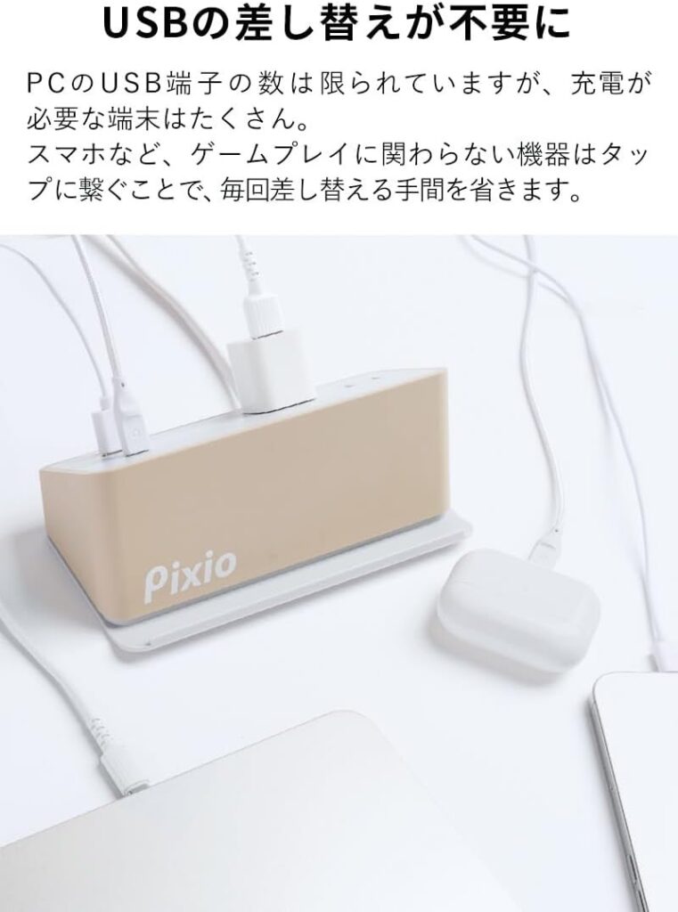 電源タップ | Pixio AC&USB TAP COMPACT | 約4,800円 | Type-C & Type-A対応でスマホやPCを同時充電。スタンド機能付き。 |